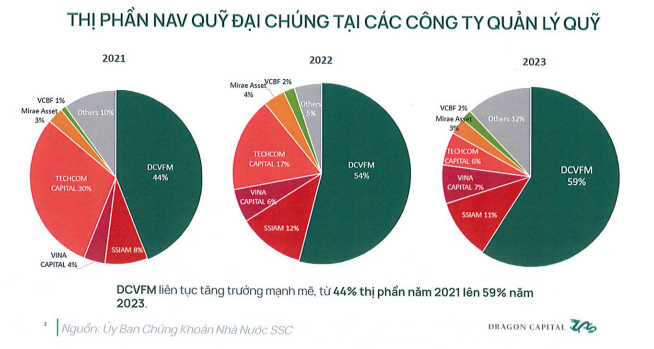 DCVFM với tư cách là một trong những công ty quản lý quỹ đại chúng dẫn đầu thị trường về cả số lượng quỹ và quy mô tổng giá trị tài sản ròng huy động (NAV) - chiếm 59% tỷ trọng so với tổng NAV các quỹ đại chúng trên thị trường Việt Nam.