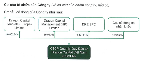 Cơ cấu cổ đông Dragon Capital gồm 3 tổ chức là Dragon Capital Markets (Europe) Limited nắm 48%; Dragon Capital Management (HK) Limited sở hữu 39.9%; DRE SPC nắm giữ 4.81% và cổ đông cá nhân khác nắm giữ 7.24%.