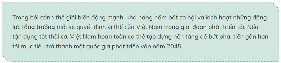 Để đáp ứng những yêu cầu đó, cần nhận diện rõ các cơ hội mới trong bối cảnh kinh tế thế giới đang thay đổi nhanh chóng, từ đó cơ cấu lại các động lực tăng trưởng truyền thống và kích hoạt những động lực mới.
