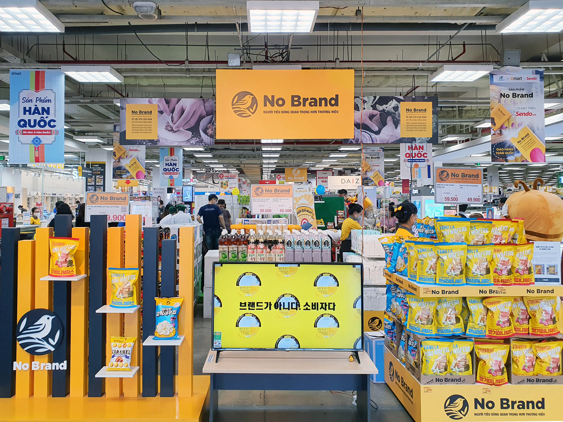 No Brand là nhãn hàng riêng được Emart tại Việt Nam nhập khẩu trực tiếp từ Emart Inc. Hàn Quốc. Với gần 600 sản phẩm, No Brand tập trung chủ yếu vào ngành hàng Tiêu dùng nhanh – FMCG (trừ thực phẩm mát), ngành hàng Phi thực phẩm – Nonfood (bao gồm đồ gia dụng và điện máy).